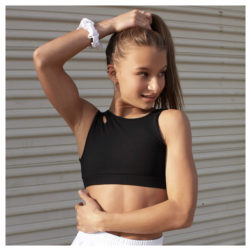 This is an epic asymetric top that gives every young dancer an edgy look while being fully covered. Pairs perfectly with the Bike Short, Nomad Short, Flip Short or Ring-My-Belle Pant.